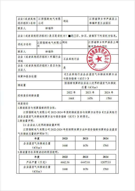 2022-2024年度温室气体排放核查报告 发表日期:2025-03-06 12:02:27 发布人:江西强联 阅读量: TAG标签: 2022-2024 年度 报告 来源声明:本文章系江西强联电气有限公司编辑原创或采编整理,如需转载请注明来自江西强联电气有限公司。以上内容部分(包含图片、文字)来源于网络,如有侵权,请及时与本站联系(0799-7516802)。 上一篇:公司与萍乡市武功山中等专业学校人才需求对接见面会 下一篇:社会责任报告2024年