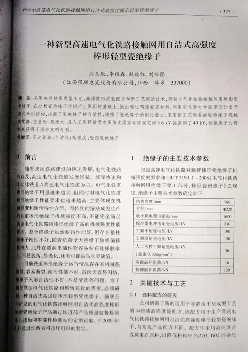 棒形轻型瓷绝缘子论文