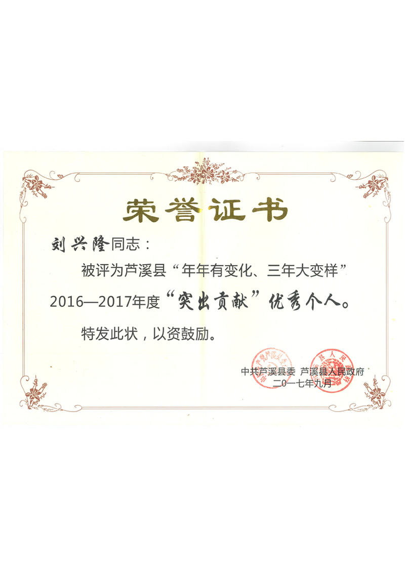“突出贡献”优秀个人